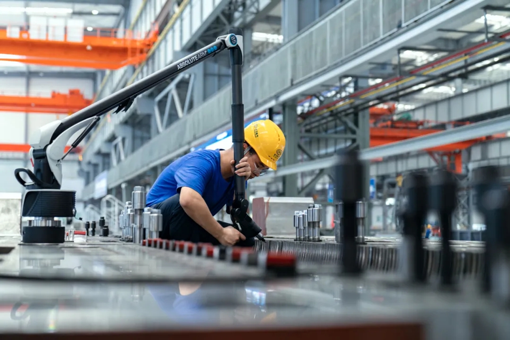东方电气集团数字科技有限公司建设的数字化车间中,生产工人正在作业。(天府新区党群工作部 供图)