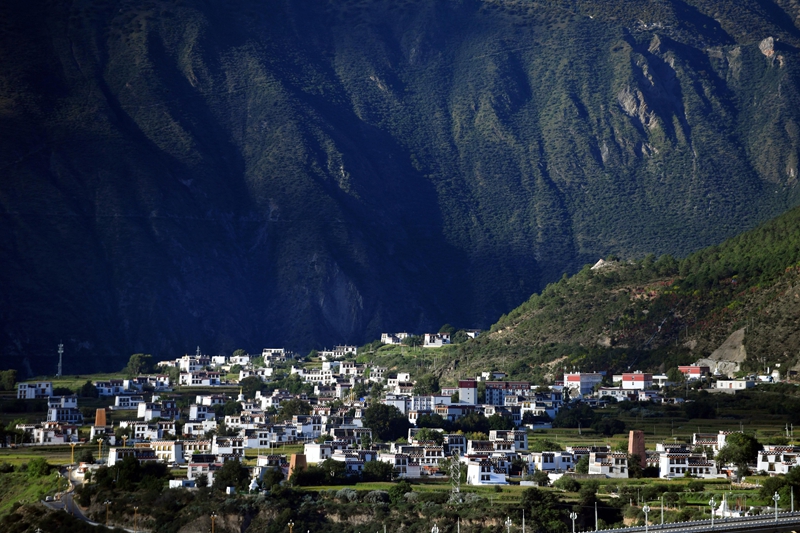 坐落在巴姆山麓下的白藏房。(王磊 摄)
