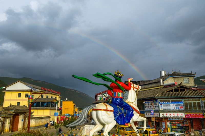 9月15日,雨后的泸沽湖镇上空出现了一道彩虹。