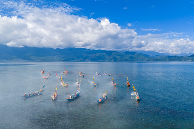 泸沽湖举行的首届转山转海节(9月16日摄,无人机照片)。