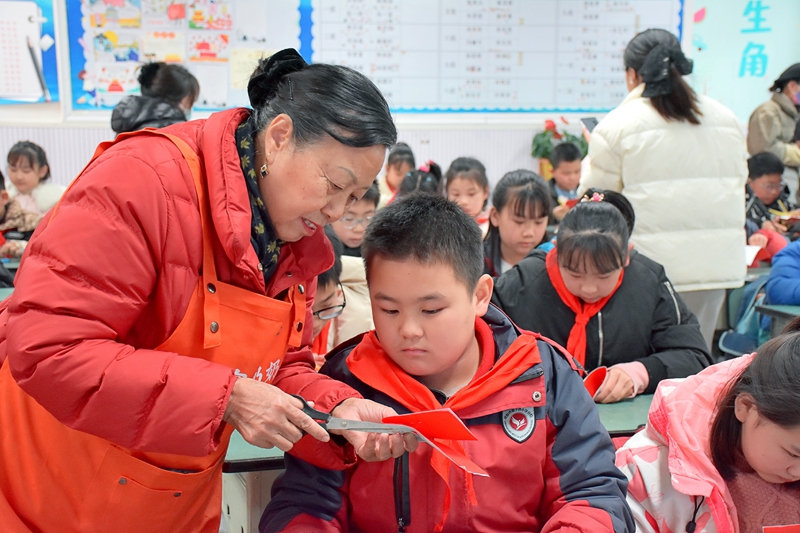 2024年12月18日,磨子桥小学分校开展剪纸活动。