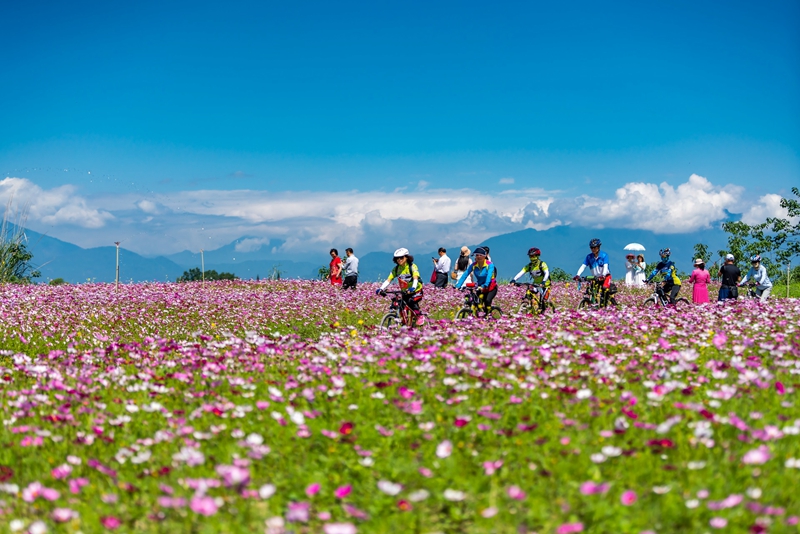 绿道骑行赏花场景。(温江区委宣传部 供图)