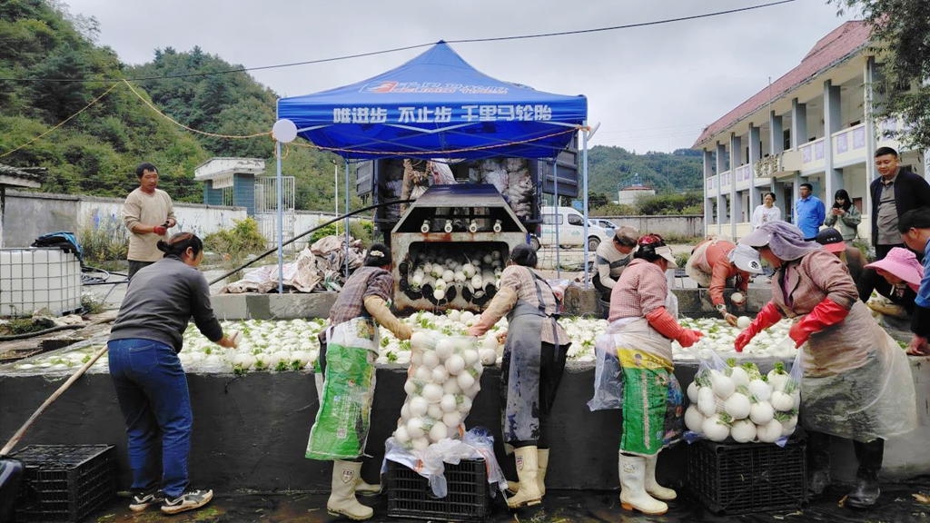 红火的萝卜产业不仅激活了双马槽村高山坡地资源,更给当地村民带来了家门口的就业机会。从种植、管护到采收、清洗、分级包装,基地常年吸纳周边农户务工。采收阶段,每天至少有30多人在基地和清洗分装流水线上务工,最多的时候能到50人,让大家在田间地头就能挣到钱。“这个萝卜基地建起后,对我们有很大好处,今年我能挣一万多元。”正在自动化清洗分装线上忙碌的村民易昌芬笑容满面地说。