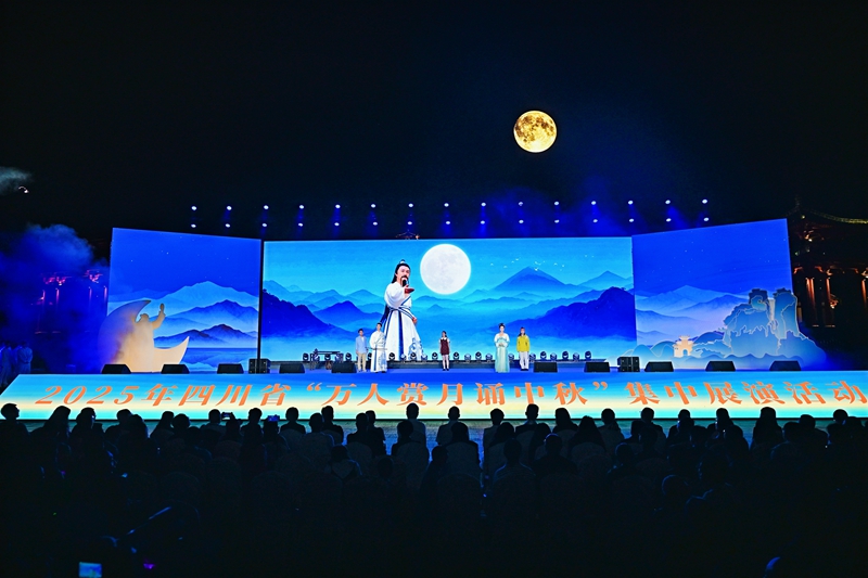 10月5日晚,中秋佳节前夕,由四川省文化和旅游厅、绵阳市人民政府主办,四川省文化馆、绵阳市文化广播电视和旅游局、江油市人民政府承办的以“太白故乡月•同诵天府秋”为主题的2025年四川省“万人赏月诵中秋”集中展演活动,在四川省绵阳市江油市青莲镇太白碑林广场举行。