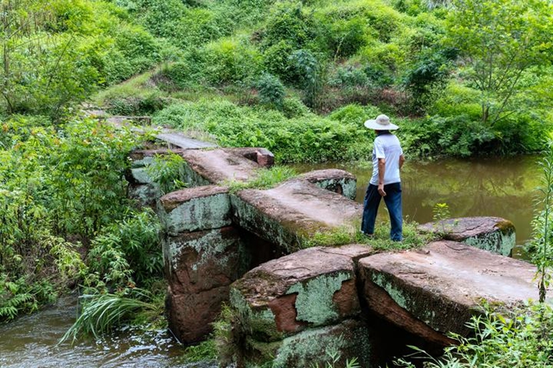 万金桥,位于四川省宜宾市翠屏区白花镇蔡家村2组,建于乾隆四十年,是翠屏区现存古桥中桥面由最大的单块石板构成的石桥(7月23日摄)。