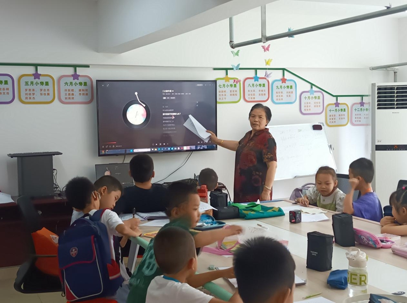 2024年7月,彭镇关工委校外辅导员、社区儿童研学基地讲师、党员“五老”志愿者吕凤琼老师到兴福社区假期学校给学生讲红色故事。
