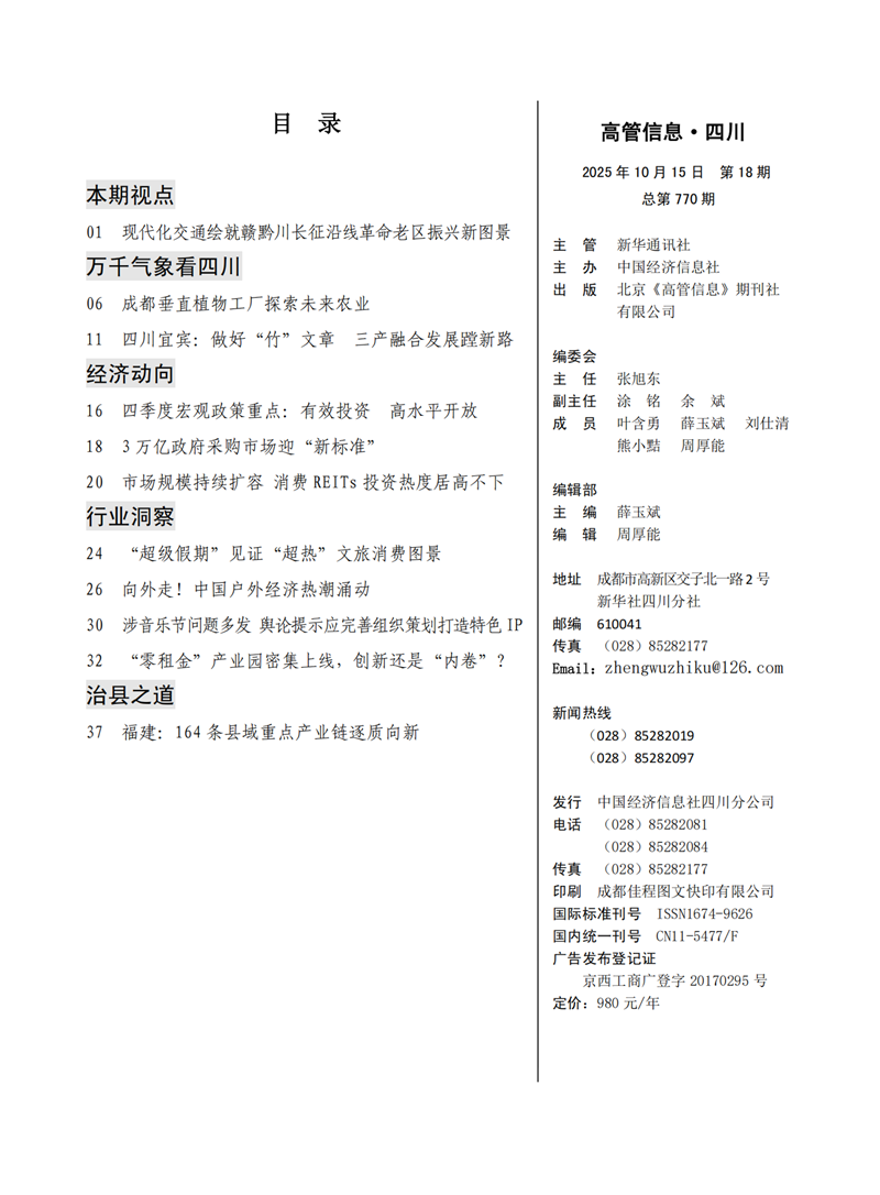 《高管信息·四川》刊物由新华社四川分社着重打造,稿件立足四川在全国发展大局中的战略定位,以做好经济宣传引导为重点,努力为奋力谱写中国式现代化四川新篇章献智献策。