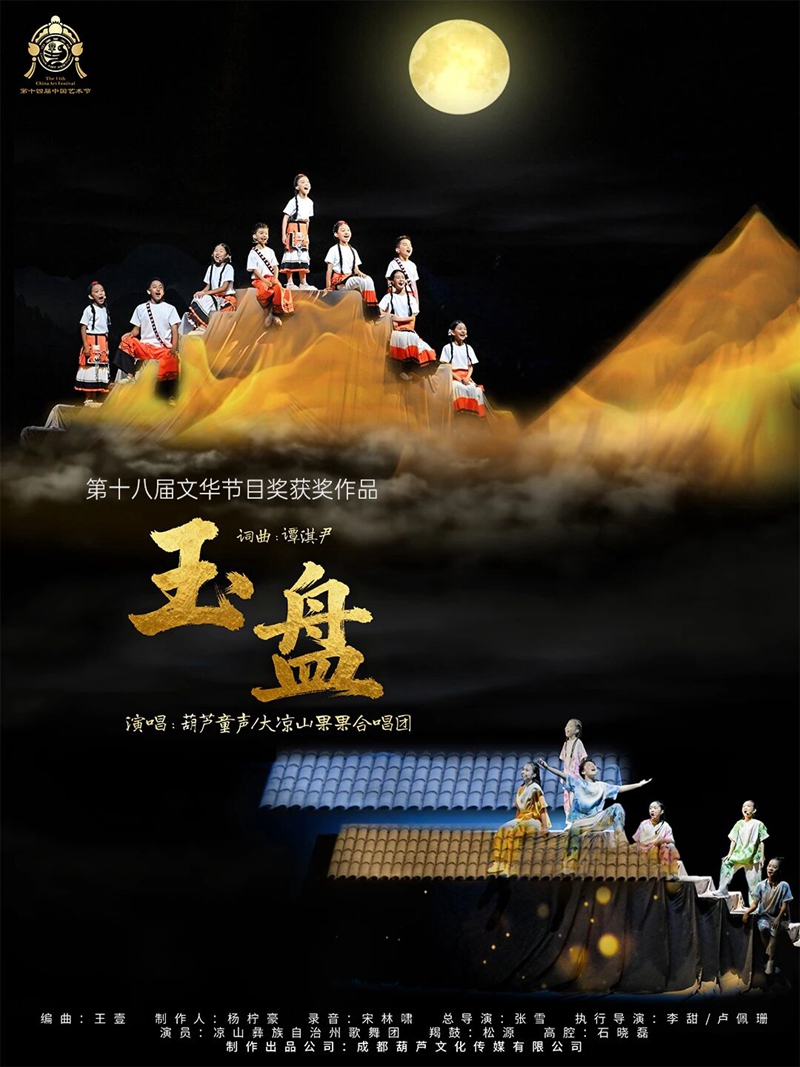 10月12日晚,歌曲《玉盘》作为参评第十八届文华节目奖终评的作品之一亮相四川南充大剧院,深受观众好评。第十四届中国艺术节闭幕式现场,孩子们再次登台演唱歌曲《玉盘》,动人的歌声打动现场每一位观众。