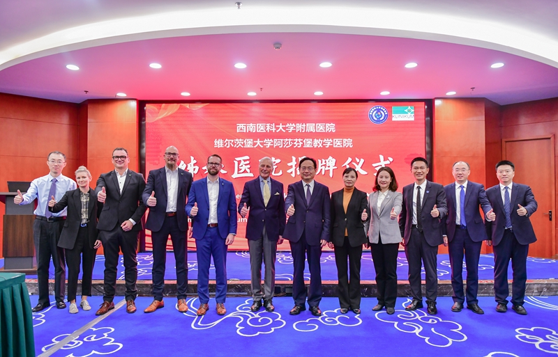 11月6日,西南医科大学附属医院与维尔茨堡大学阿莎芬堡教学医院“姊妹医院”揭牌仪式在四川省泸州市举行。此次揭牌仪式是两家医院深化合作、共谋发展的重要里程碑,也是泸州融入国家区域医药健康中心建设、持续扩大医疗卫生领域国际交流合作的又一实质性成果。