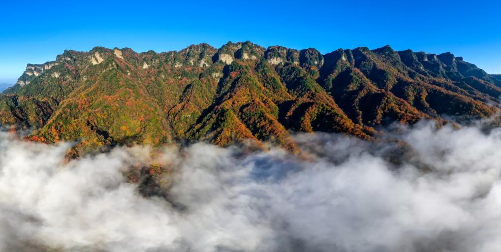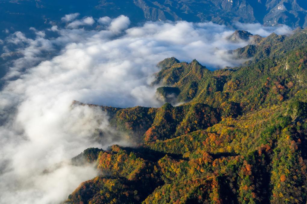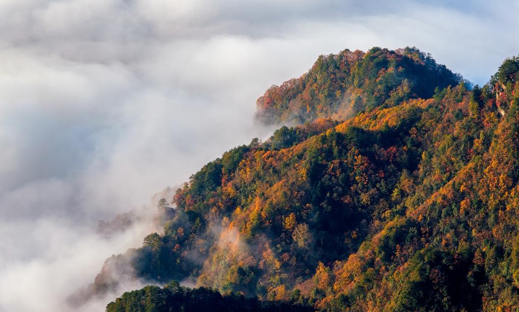 旺苍县盐井河大峡谷:云海与彩林(11月11日摄)。