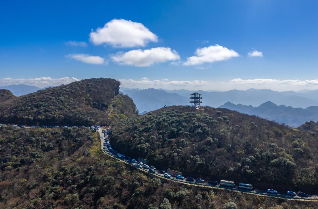 旺苍县盐井河大峡谷:自驾车辆蜂拥而至(11月11日摄)。