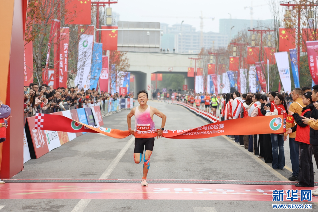 男子组冠军王汝琴冲线。新华网发(曹鹏 摄)