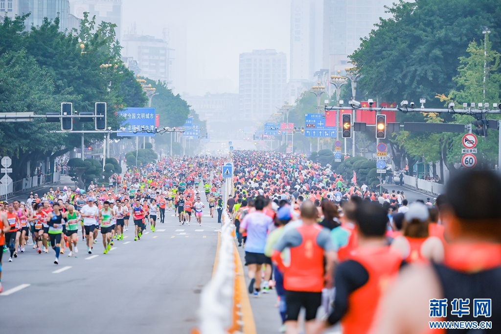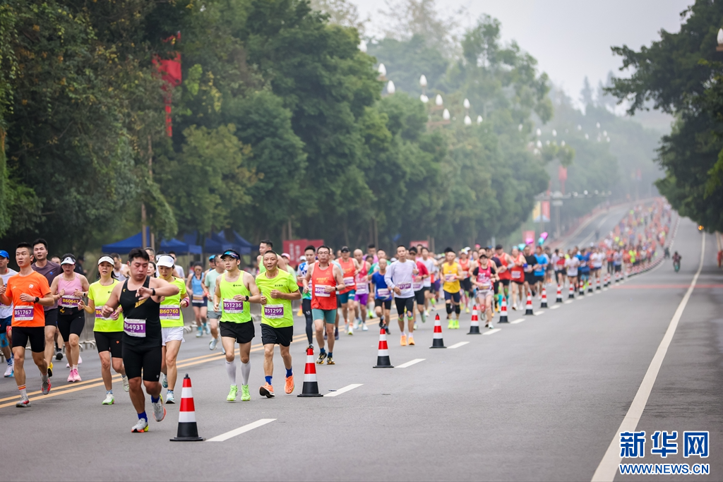 2025广安马拉松赛起跑瞬间。新华网发(曹鹏 摄)