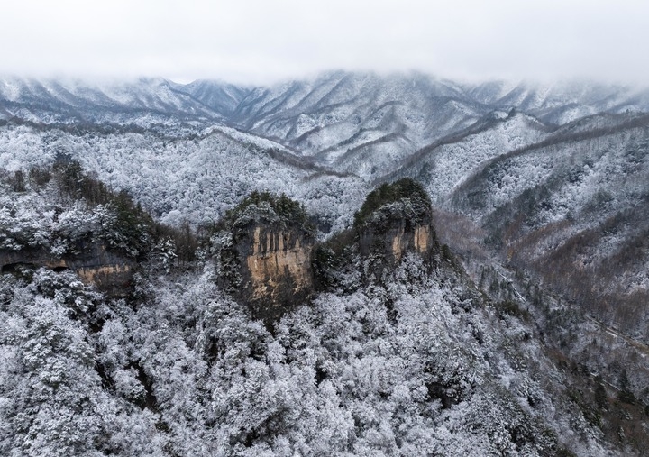 米仓山景区的初雪。新华社发(付海旭 摄)