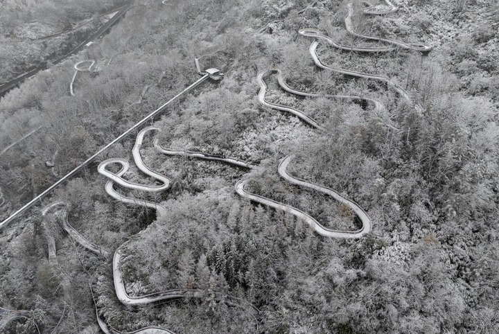 米仓山景区“红叶飞车”赛道雪景。新华社发(付海旭 摄)