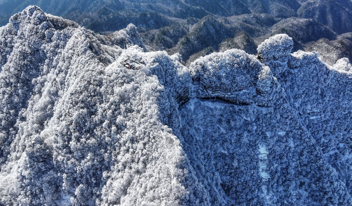 米仓山景区香炉山初雪。新华社发(杨建 摄)