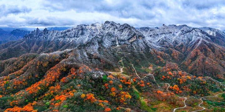 11月17日受强冷空气影响,被誉为“中国红叶第一山”的光雾山旅游区迎来今年第一场雪,漫山红叶与洁白冰雪相遇,令人流连忘返。