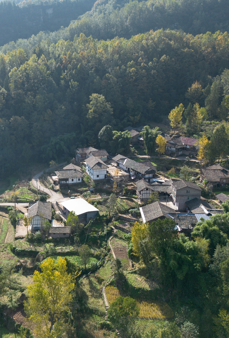 巴中市通江县泥溪镇梨园坝村一角(11月13日)。新华社发(程聪摄)