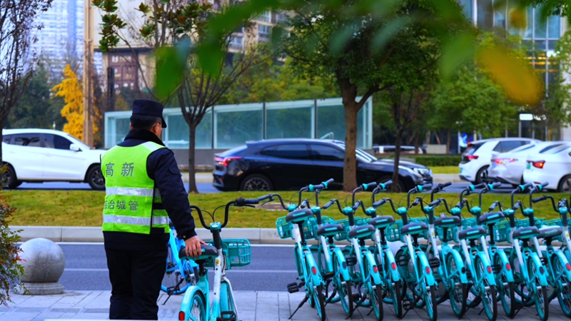 规范自行车停放。(成都高新区桂溪街道 供图)