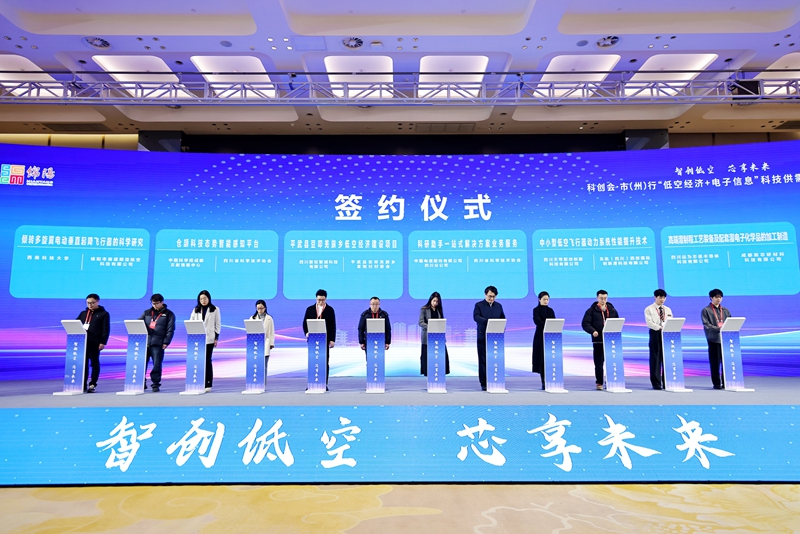 活动现场举行了6个重点合作项目签约仪式。签约项目覆盖低空经济场景建设、科研工具平台、无人机动力系统、智能感知平台等领域,贯穿低空经济、电子信息两大产业关键环节。其中,平武县豆叩羌族乡低空经济建设项目将低空巡护、应急救援、智慧乡村治理等功能深度融合,让低空经济扎根乡村沃土。