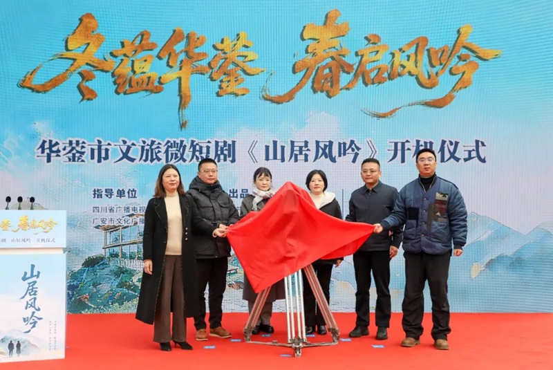 1月5日上午,四川省广安华蓥市第一部文旅微短剧——《山居风吟》开机仪式在华蓥市十里芳菲·红岩美村银杏树广场举行。
