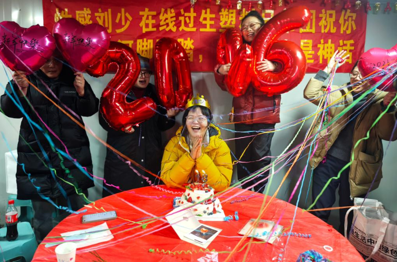 在云上民宿,几位户外爱好者为同伴过生日(2025年12月31日摄)。