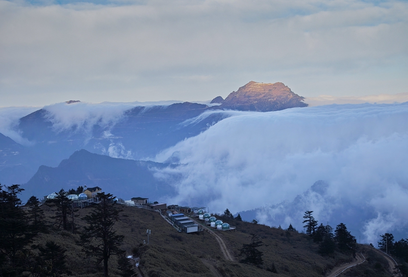位于四川省甘孜藏族自治州泸定县兴隆镇化林村的娘娘山,山顶海拔3700米左右,有弥勒殿、小宝顶等360°观景台,可欣赏贡嘎群峰、日出、云海等景观,吸引众多游人前来打卡。从2025年年初开始,化林村集体经济组织全新升级半山腰的云上民宿综合体,不断为游客提供更好的休闲配套设施。(摄影:李向雨、李波、王李涛、陈大康)