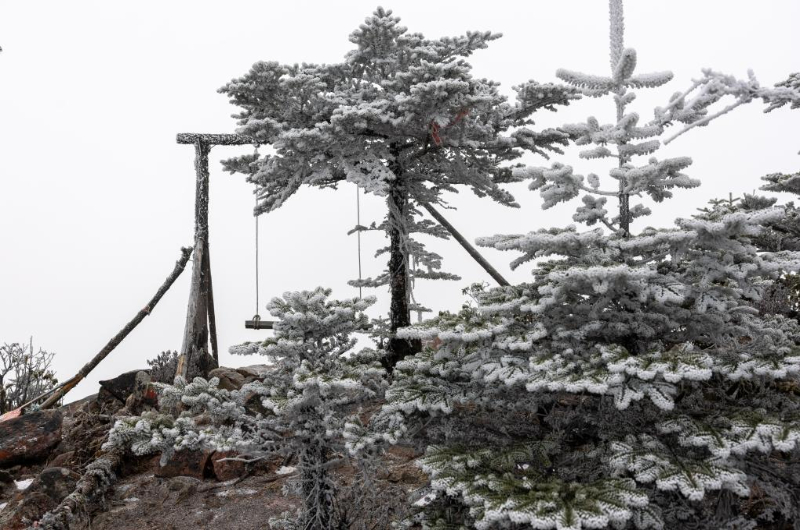 在娘娘山弥勒殿观景台的雾凇景观(1月1日摄)。