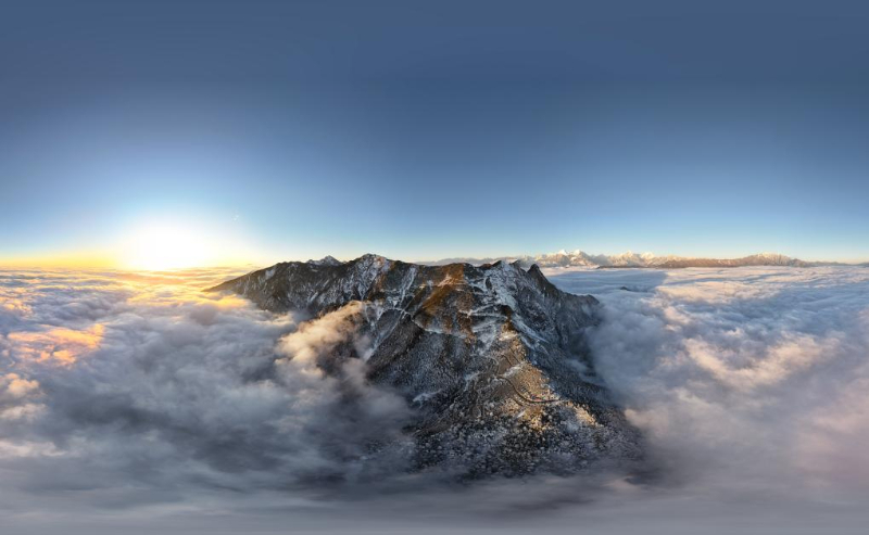 俯瞰云海中的娘娘山(2025年12月29日摄)。