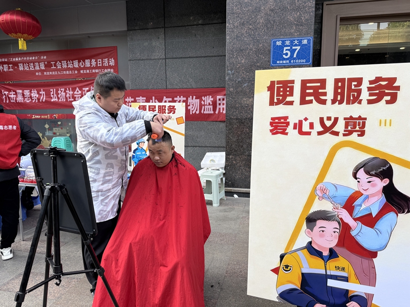“跑快递没时间体检,今天驿站把医生请过来,还能免费剪发、贴手机膜,太贴心了!” 快递员李师傅对活动内容连连称赞。环卫工陈阿姨也笑着说:“不仅喝到了热奶茶,还学到了维权知识,工会‘娘家人’太靠谱!”