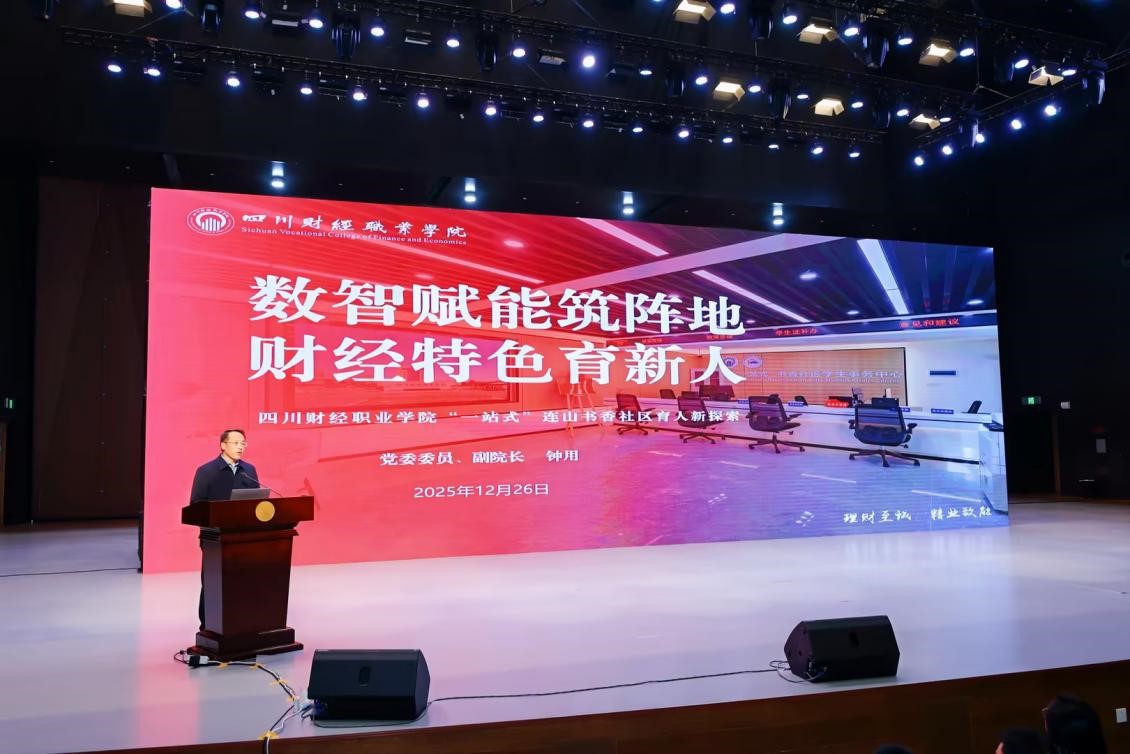 会上,四川财经职业学院作为高职院校代表受邀作经验分享。钟用以《数智赋能筑阵地 财经特色育新人》为题,从数智化赋能、财经特色彰显、育人实效提升等方面,系统阐述了四川财经职业学院在“一站式”学生社区建设中的实践探索与创新成果,展现了学校以学生为中心,深耕社区育人阵地的具体举措,赢得了与会领导及兄弟院校的高度认可和一致好评。