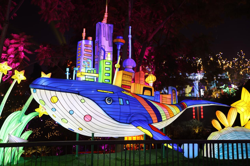 图为《创想美灯汇》灯组之一。《创想美灯汇》是一座汇集全球儿童画作与奇思妙想的立体童心展览馆。以全球儿童画为灵感源泉,打造出充满童真与幻想的梦幻场景。