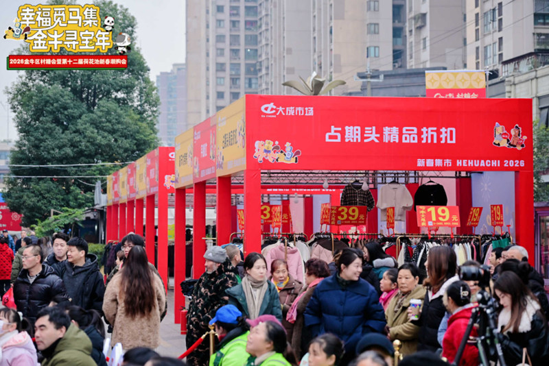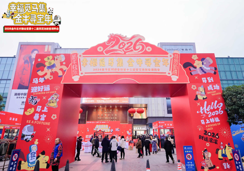 1月24日上午,“幸福觅马集・金牛寻宝年”——2026金牛区村糖会暨荷花池新春潮购会在成都荷花池片区正式启幕。活动联动荷花池片区七大核心市场、龙湖上城天街、金牛万达广场三大商业板块,邀请邛崃、大邑、彭州三地特色食品企业参展,同步设置“睦邻亲·金牛情”时令科普和暖新小站,打造邻里体验类活动。