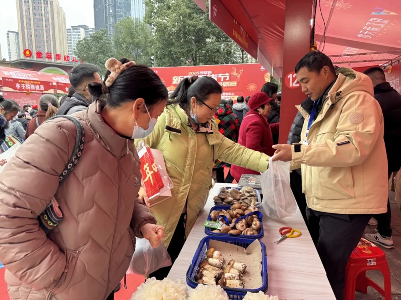 “特别感谢政府搭建这么好的平台,年货节现场人气特别旺,一天下来销量比平时翻了好几倍。我们带来了自家生产的特色农产品,不少市民都是回头客,也收获了很多新客户,特别有成就感。”四川森鲜食品有限公司董事长杨林说道。