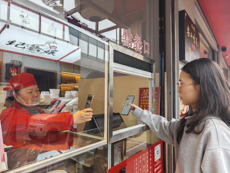 消费者凭高铁票根领取优惠券后在线下商铺核销(李铠希 摄)