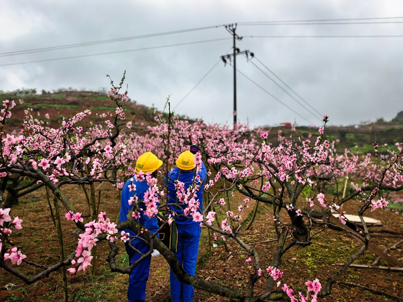 “供电公司来得早、干得快,山顶线路架通后,今年桃花节用电便不用愁了。”站在施工现场,八角村党支部书记刘旭东说道,这趟电力专线,不仅彻底解决了冬瓜寨桃花节期间开幕式、灯光景观、商户经营、游客服务的用电需求,同时破解了山脚抽水到山顶灌溉桃树的用电难题。