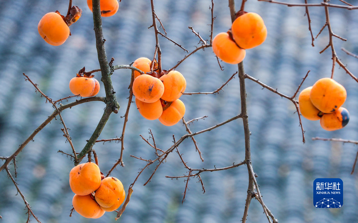 11月27日,在四川省泸州市江阳区泰安街道咀阳村,农户房前的柿树上硕果累累。新华社发(刘学懿 摄)