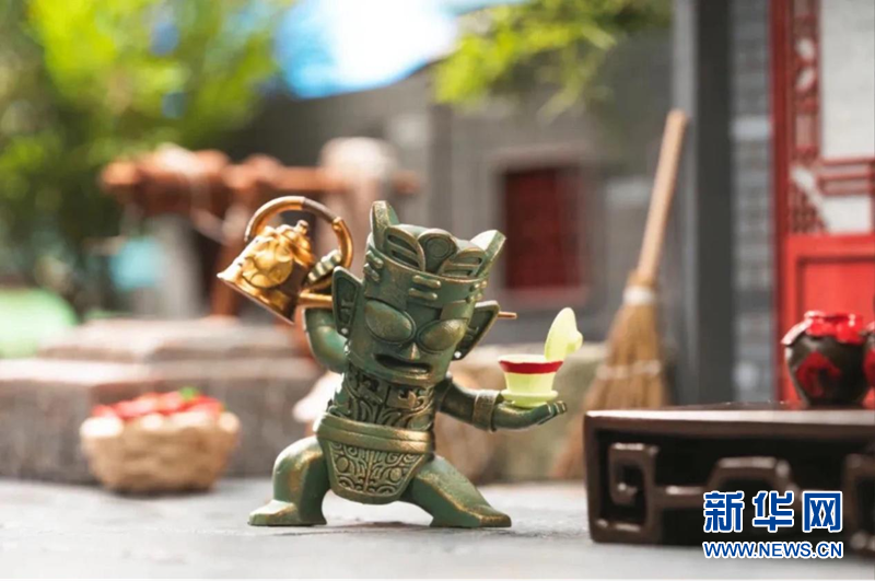 三星堆的“川蜀小堆”主题盲盒,以三星堆文物为原型,融入了变脸、茶文化、蜀绣、长牌等,呆萌的形象与神秘气息结合,别具一格。
