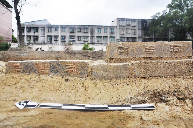 ●“新都城”铭文砖有的出土于城墙外侧底部,有的出土于遗迹内