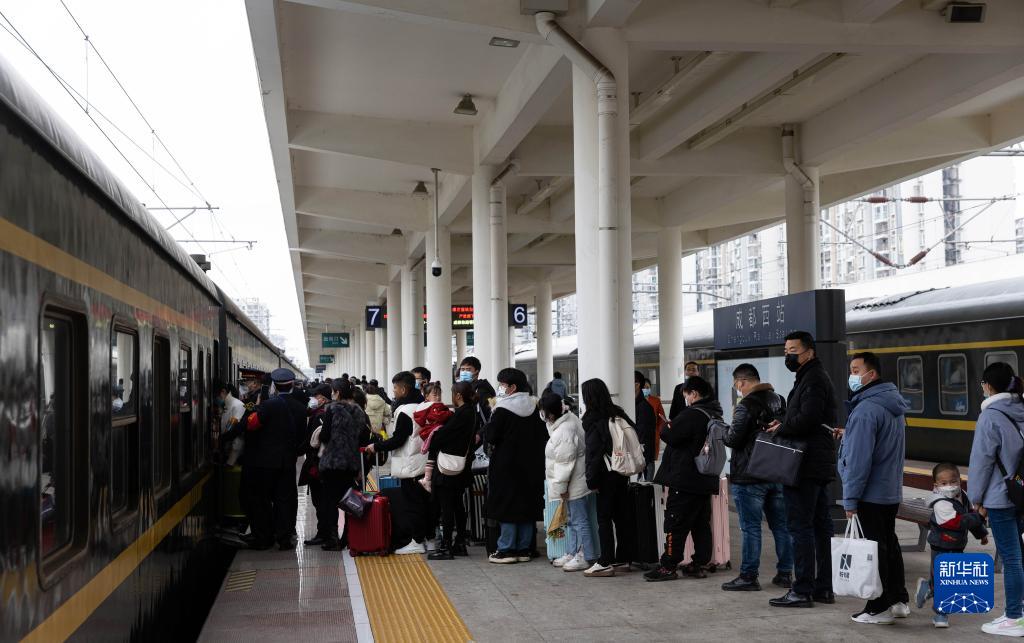 2月13日,中国铁路成都局集团有限公司增开临客K4618次列车,从成都西站始发,沿途经过四川、陕西、河南、安徽等外出务工大省,经过38小时、行驶2185公里最终抵达上海站。这是今年春运期间从成都出发的最后一趟增开临客列车。据悉,中国铁路成都局集团有限公司在春运期间共开行35组、3492列临客服务短途旅客和务工人员返乡、外出。