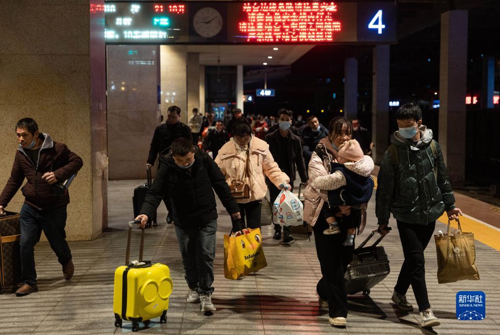 2月13日,在达州站,旅客准备乘坐临客K4618次列车。新华社记者 江宏景 摄