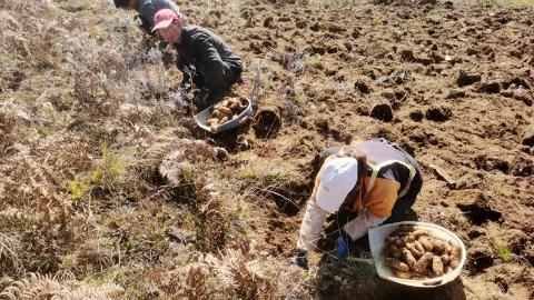 近日,四川省乐山市金口河区金河镇板厂坪的高山青冈林间一派丰收景象。