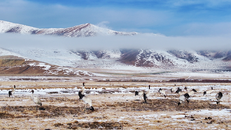 黑颈鹤北返红原大草原
