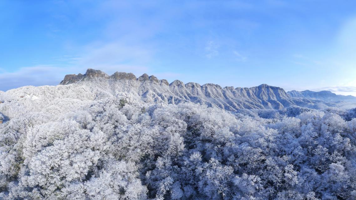 光雾山初雪染峰林 云海雾凇入画来