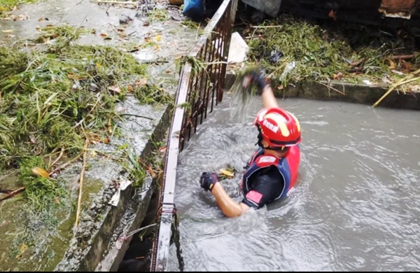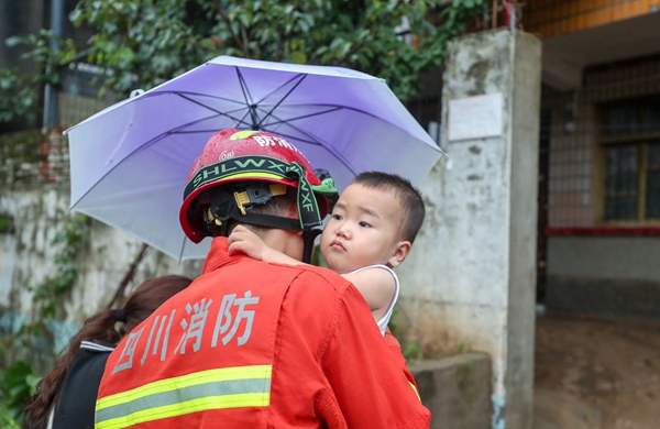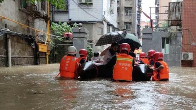 四川广安强降暴雨成城区内涝 消防紧急排险