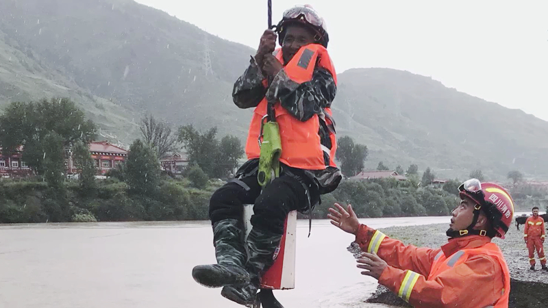 四川炉霍:河坝决堤3人被困孤岛 消防员成功营救