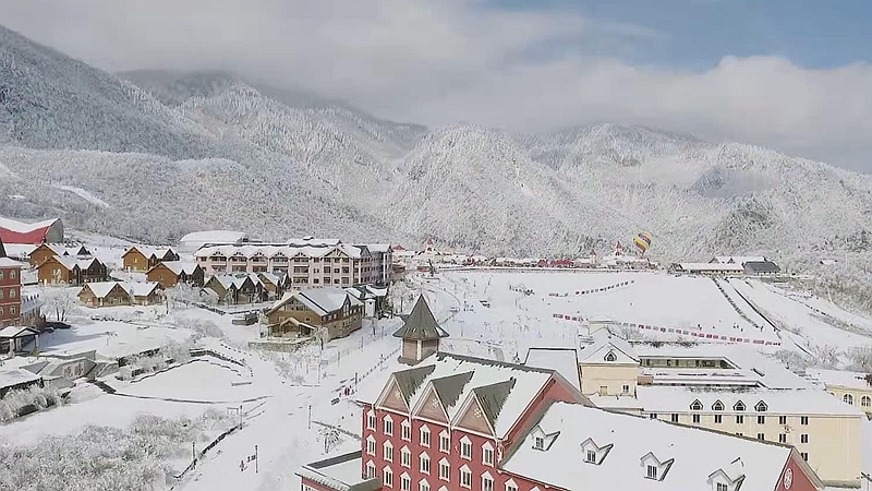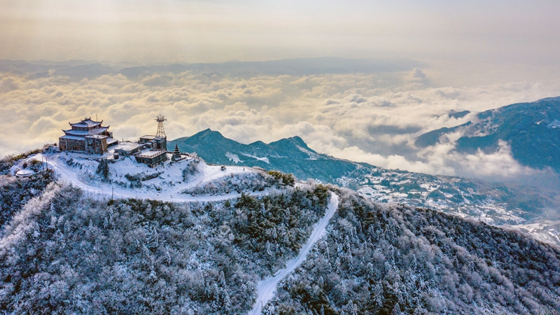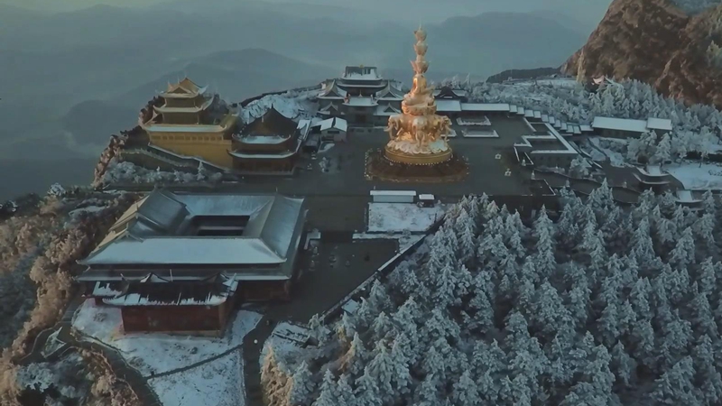 【“飞阅”中国】春雪落峨眉 阳光照金顶