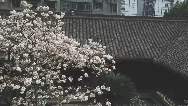乐山市沙湾区郭沫若故居:一树樱花正绽放