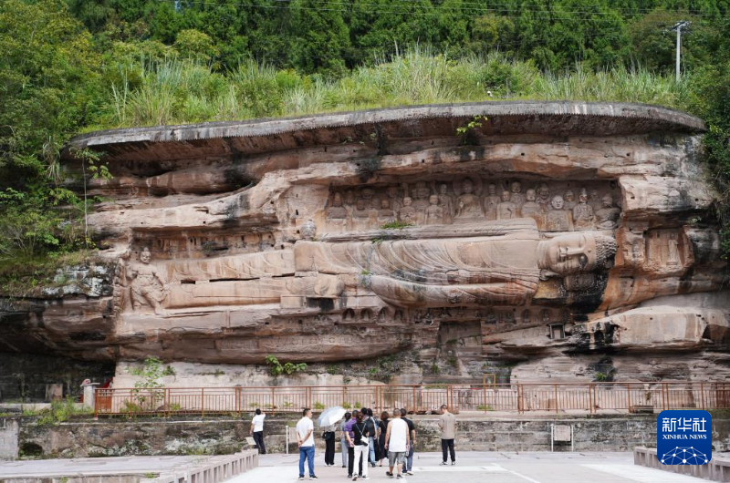 伴着丝丝桂香,沿着滨河步道一路前行,不出片刻便抵达四川省资阳市安岳县卧佛院景区。山野深处,一尊身长23米的左侧卧佛逐渐映入众人眼帘。