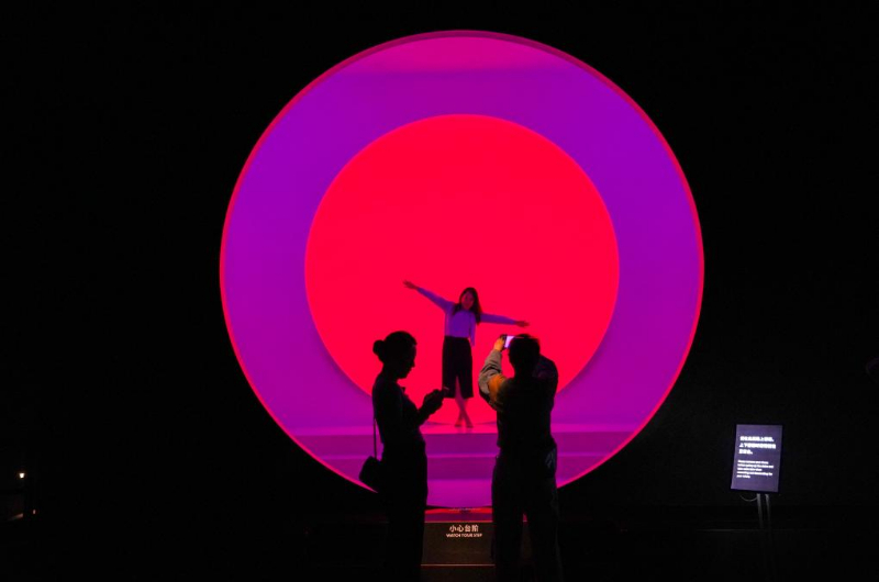 观众在ARTE全沉浸式美术馆内拍照留念(11月10日摄)。新华社记者 唐文豪 摄